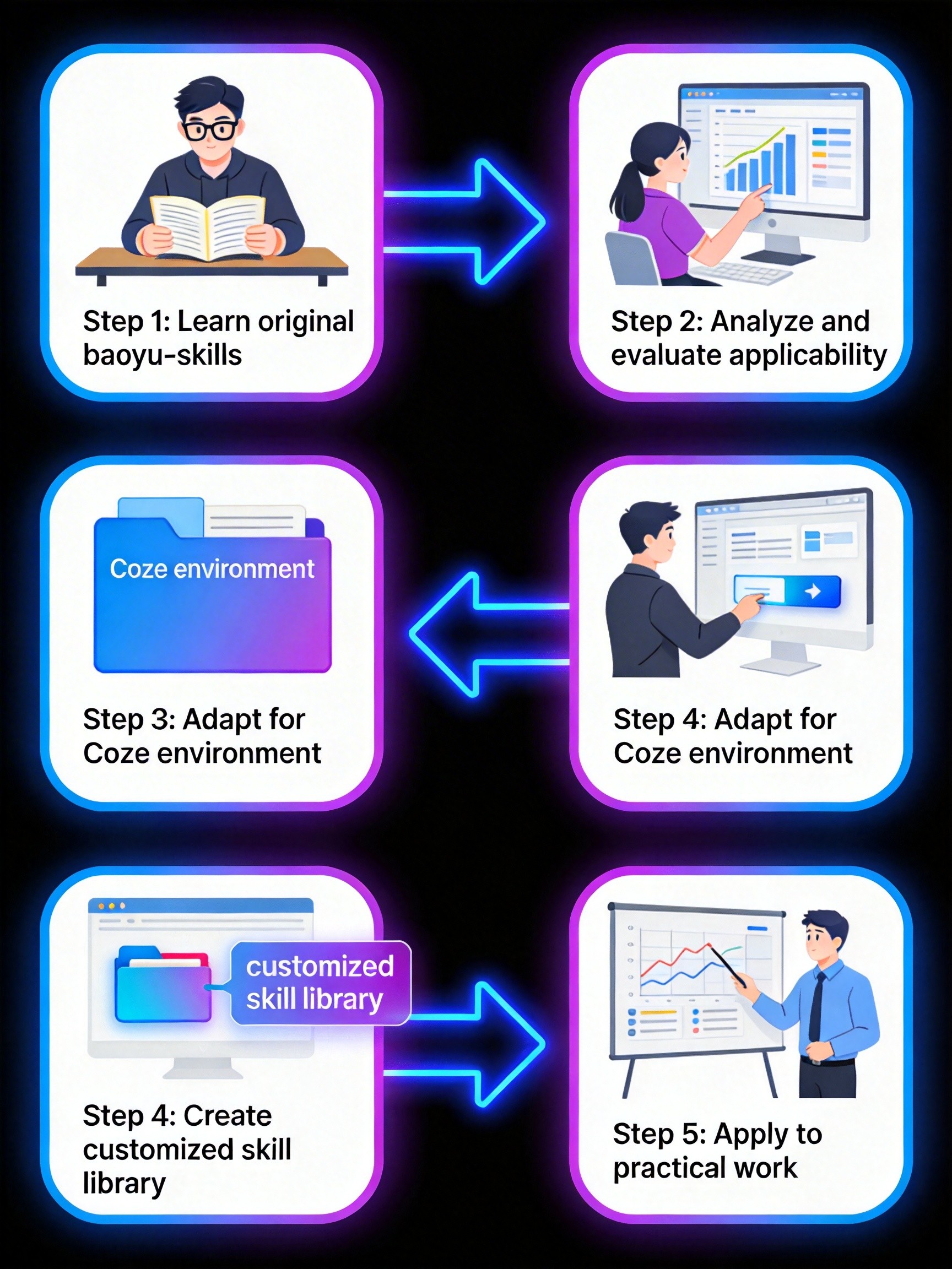 基于 baoyu 的方法论,我创建了自己的技能库,保留了核心方法,适配扣子环境。